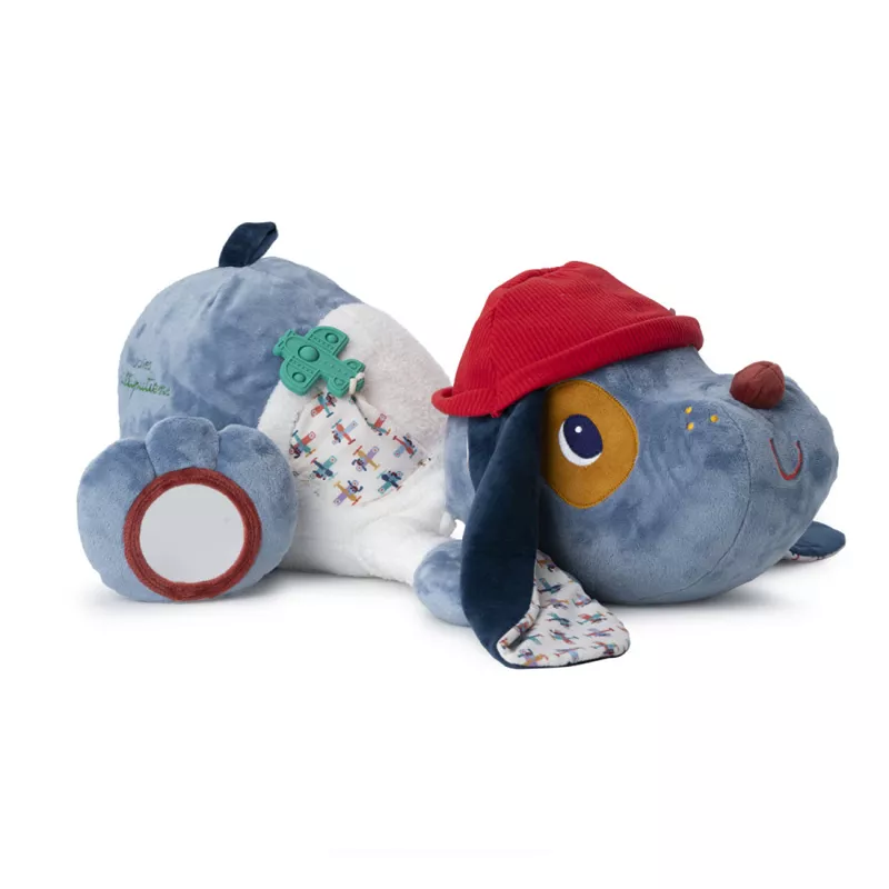Ninguém vai resistir a dar um grande abraço ao cãozinho Jules em formato gigante! Com o seu aspeto ligeiramente fofo, o cão Jules é simplesmente irresistível. Oferece uma experiência tátil cativante a cada toque. Com a sua variedade de texturas e de actividades, os mais pequenos descobrirão um universo de sensações, estimulando o seu desenvolvimento sensorial: tecidos macios, texturas, espelho, um jogo pop-up em forma de avião e muitas outras surpresas para explorar. Para além de ser decorativo, este cão reconfortante oferece horas de brincadeiras estimulantes e tranquilizadoras.A partir dos 6 meses
