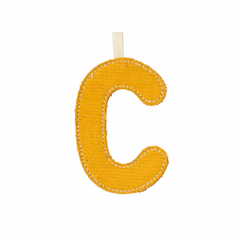 - Letra C em tecido com costura fosforescente que brilha no escuro.