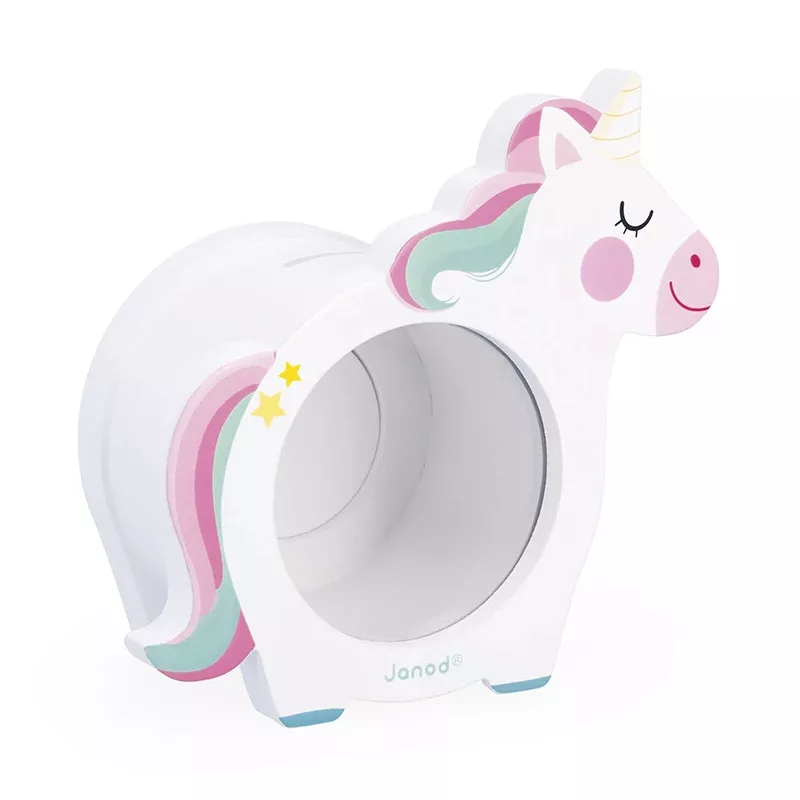 Com este divertido mealheiro com a forma de um unicórnio, poupar será mais divertido do que nunca. Com a sua janela transparente, os mais pequenos poderão ver como se enche com as moedas que poupam. E quando estiver cheio ou quando quiserem uma guloseima, só têm de abrir a tampa magnética na parte de trás e podem facilmente obter as moedas de que necessitam, pelo que poupar será um prazer!
